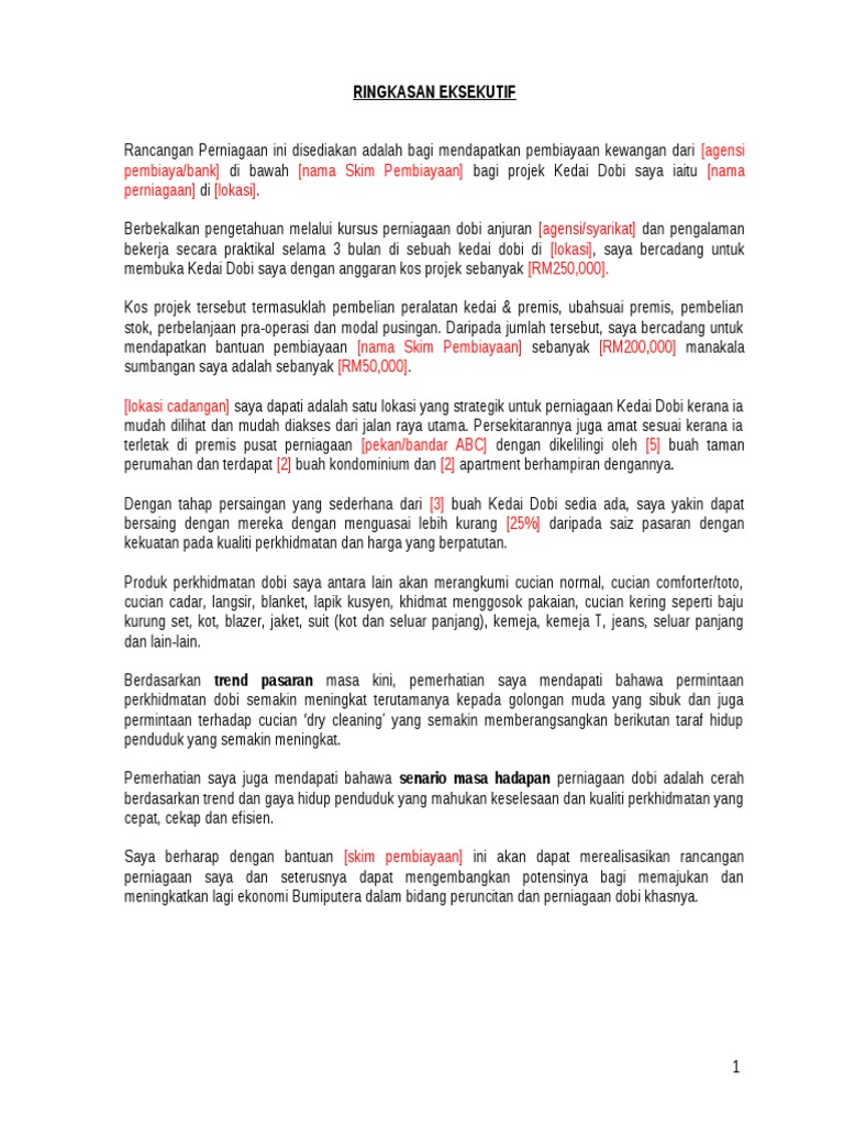 Tempat Kursus Kami. Gaji dan elaun pekerja 120000 3. Contoh kertas kerja perniagaan Dobi untuk rujukan bisnes anda sendiri.