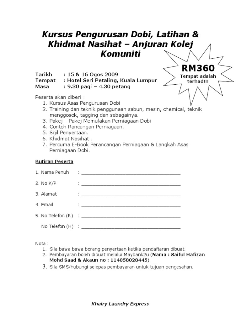 Berikut ini adalah kisah sukses usaha yang bisa Anda gunakan sebagai referensi untuk membuat Contoh Proposal Kursus Mengemudi. 7am to 8pm Sat. Sebelum ini kebanyakkan perniagaan kedai dobi adalah jenis dobi perkhidmatan.